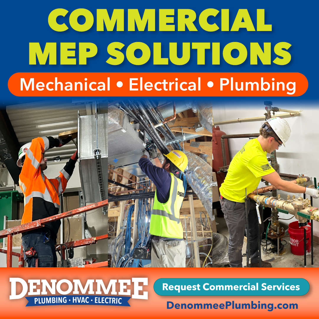 Denommee Plumbing, HVAC & Electric provides commercial MEP estimation, project management, installation, and service for a wide range of building types across Eastern Massachusetts and Southern New Hampshire. The company delivers comprehensive mechanical services that help commercial clients design, build, upgrade, and maintain critical building infrastructure.
